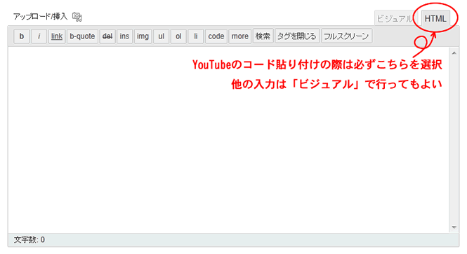 (変更するとコードは自動で書き換えられる。) ここで注意しなければならないのは、編集画面でコードを貼り付けるときは「HTML」タブで行うということ。(下図参照)